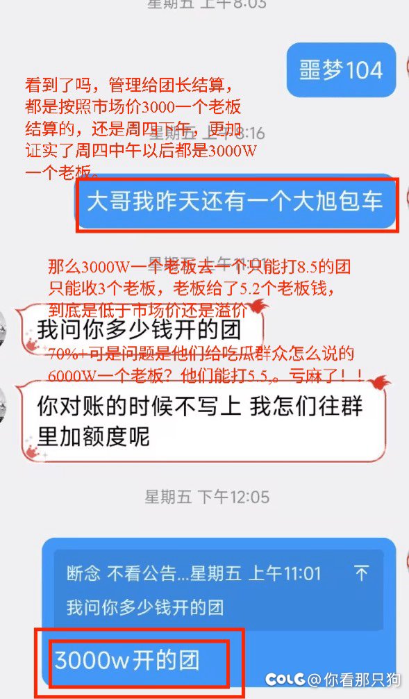二他们260一车接的,260*63=16380,相当于5.46个老板钱(3000W),少吗周四周五有几个团敢打6.5或者5.5?打的顶配8.5还炸的一地稀碎!放到散户金团里,从哪里挤出来多的老板位置让他们收钱?