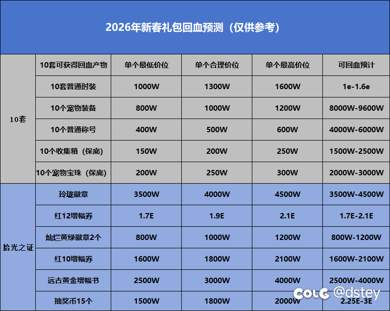 【玩家分享】2026年春节礼包回血预测(仅供参考)硬核分享dstey3w