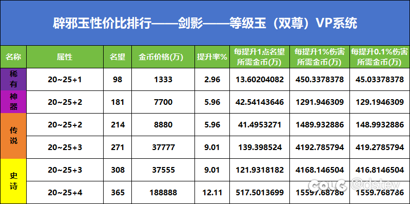 【玩家分享】辟邪玉性价比排行榜——等级玉(剑帝)硬核分享4384