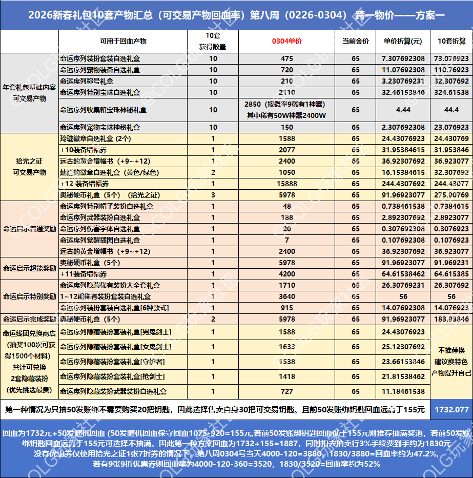 【春节礼包】第八周礼包产物物价统计及回血率新春礼包1082