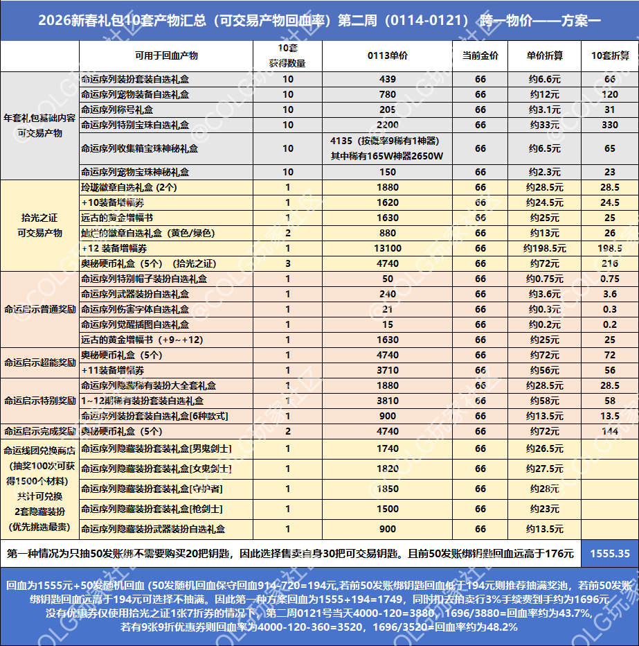 【春节礼包】第二周礼包产物物价统计及回血率—方案一新春礼包1044
