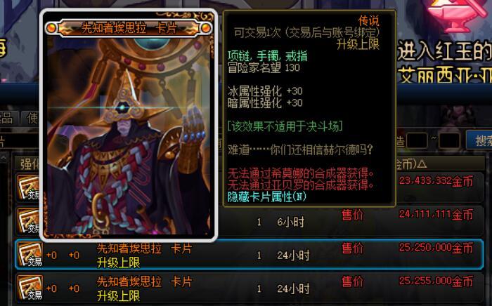 zwl30 发表于 2022-03-13 13:37:36 就是这个红玉卡我有点不能理解,属性和先知卡一样,拍卖价格差那么多,我做成宝珠高价上架居然也被买了[emb ...