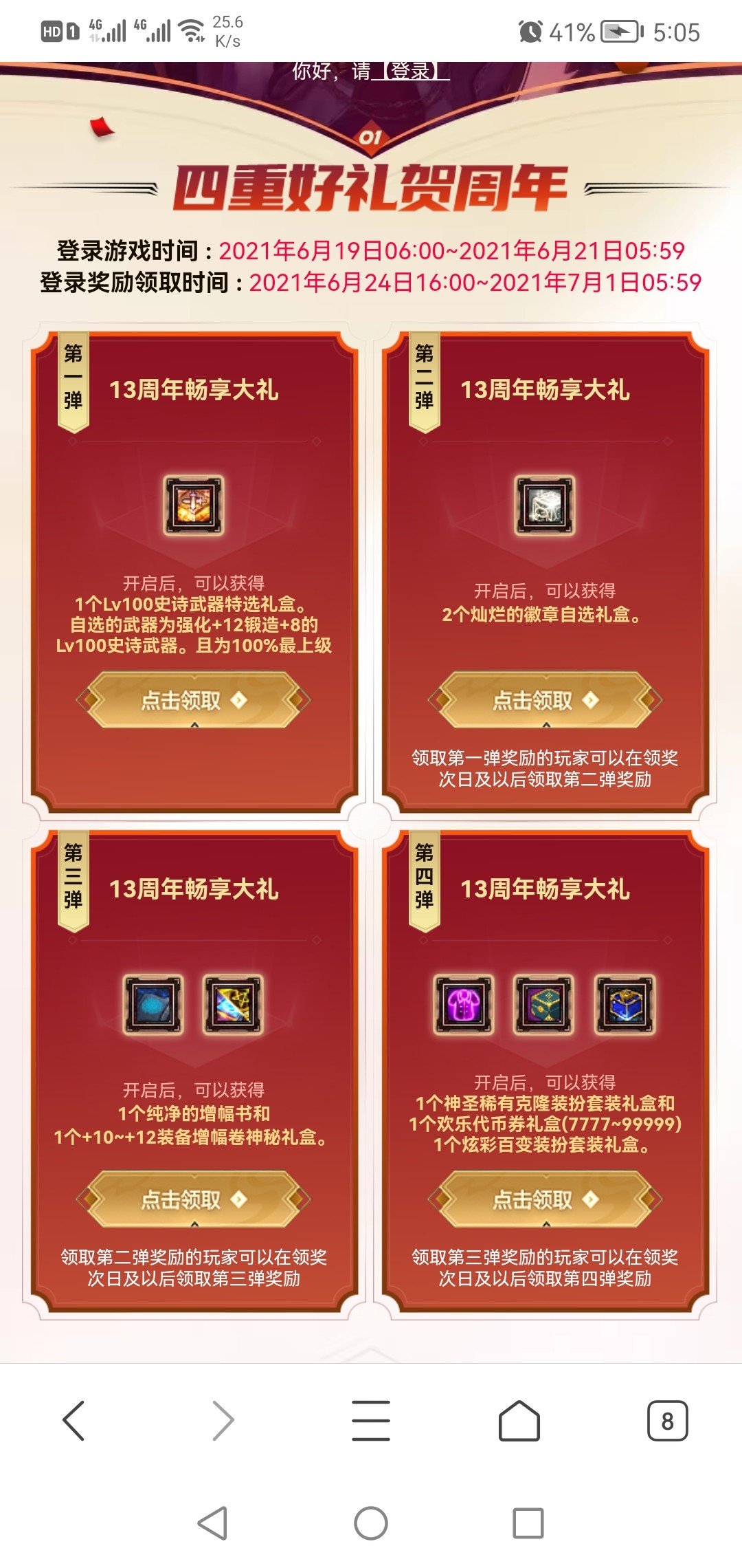 跨7柯神 发表于 2022-06-13 16:53:55 那我是不是会完美错过周年庆?周年庆是6.16那一天登录才有资格吗