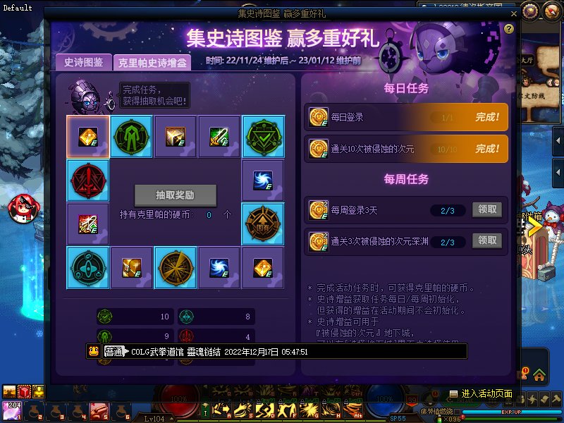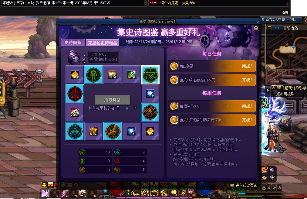 挑肥拣瘦 发表于 2022-12-8 08:41 12.8 1.完成集史诗图鉴所有每日任务,可得10可用积分,格斗家参与可得20可用积分