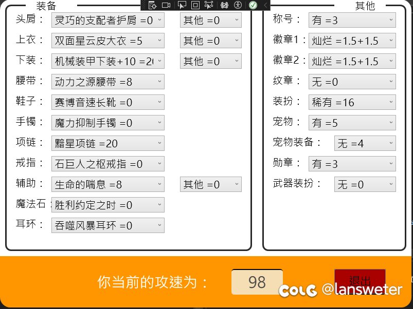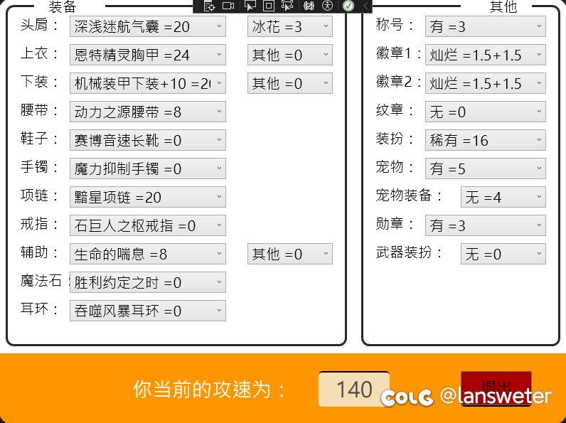 [装备搭配] 一个简简单单的攻速计算工具[复制链接] |