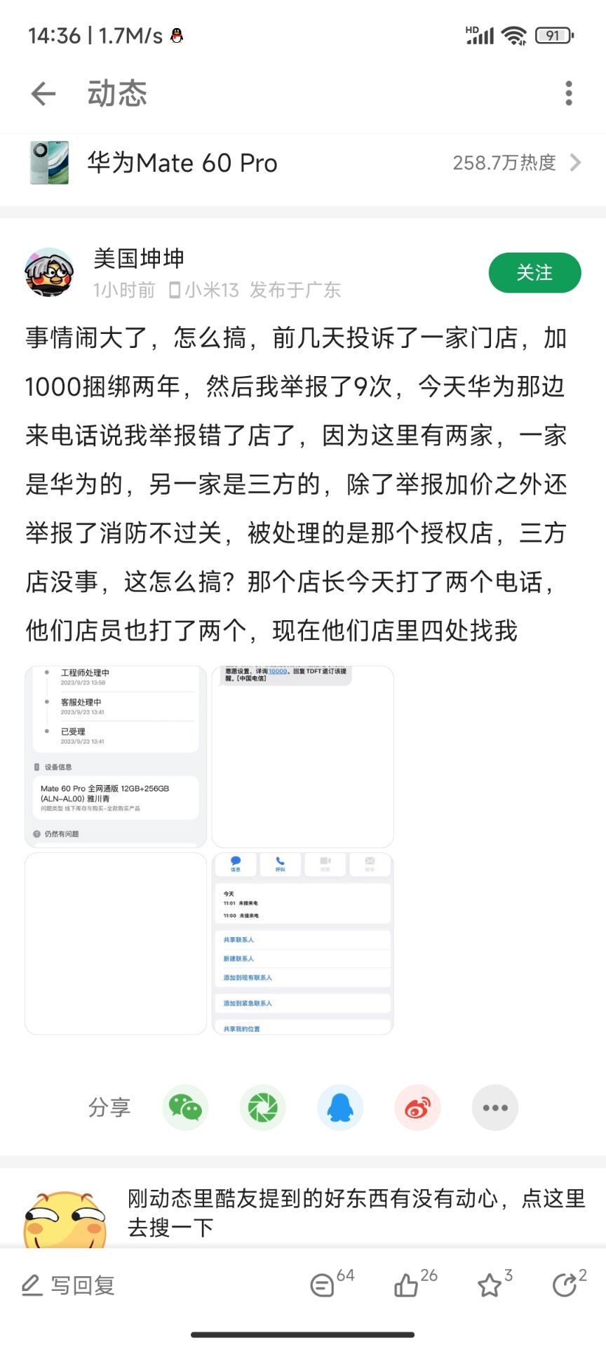 益达、 发表于 2023-09-27 08:12:17 打华为客服电话举报还不如举报消防起码举报消防真能搞他们 华为客服屁用没有 ...