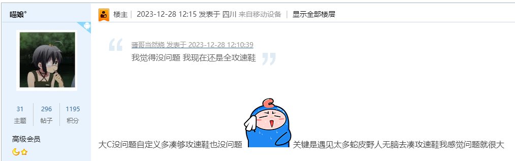 喵娘° 发表于 2023-12-28 23:46 算了,较真的人哪里都能扛,那野人大批申请的,都是一身就两三件自定义,以为自己屌炸天了 ...