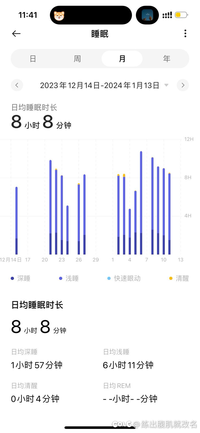练出腹肌就改名 发表于 2024-1-26 11:46 睡的挺多的,就是睡不饱