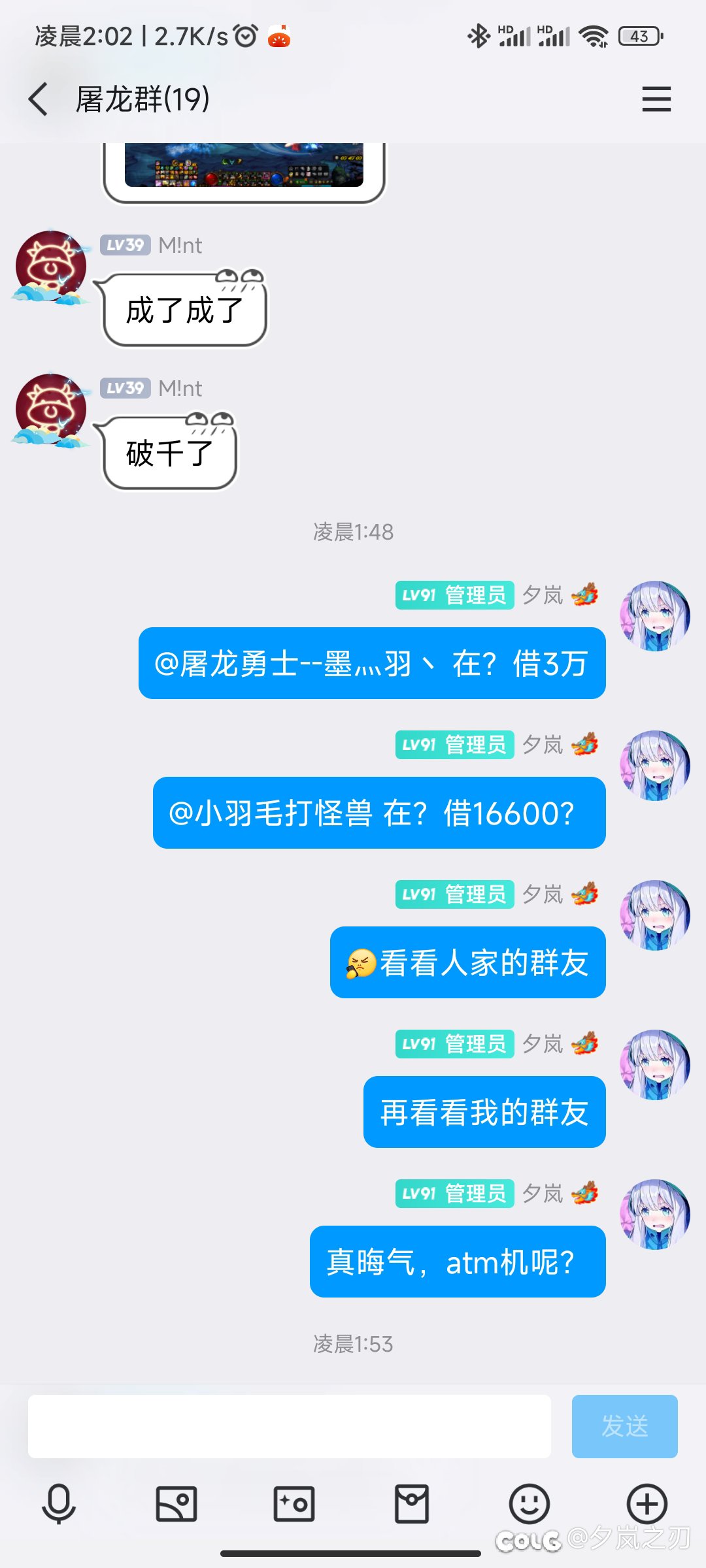 justforpatch 发表于 2024-06-17 00:29:10 软萌二次元 至少得是南梁 “借”钱的时候一定要低三下四,语气非常软,一定要先规划(画上)还钱计划(大饼) ...
