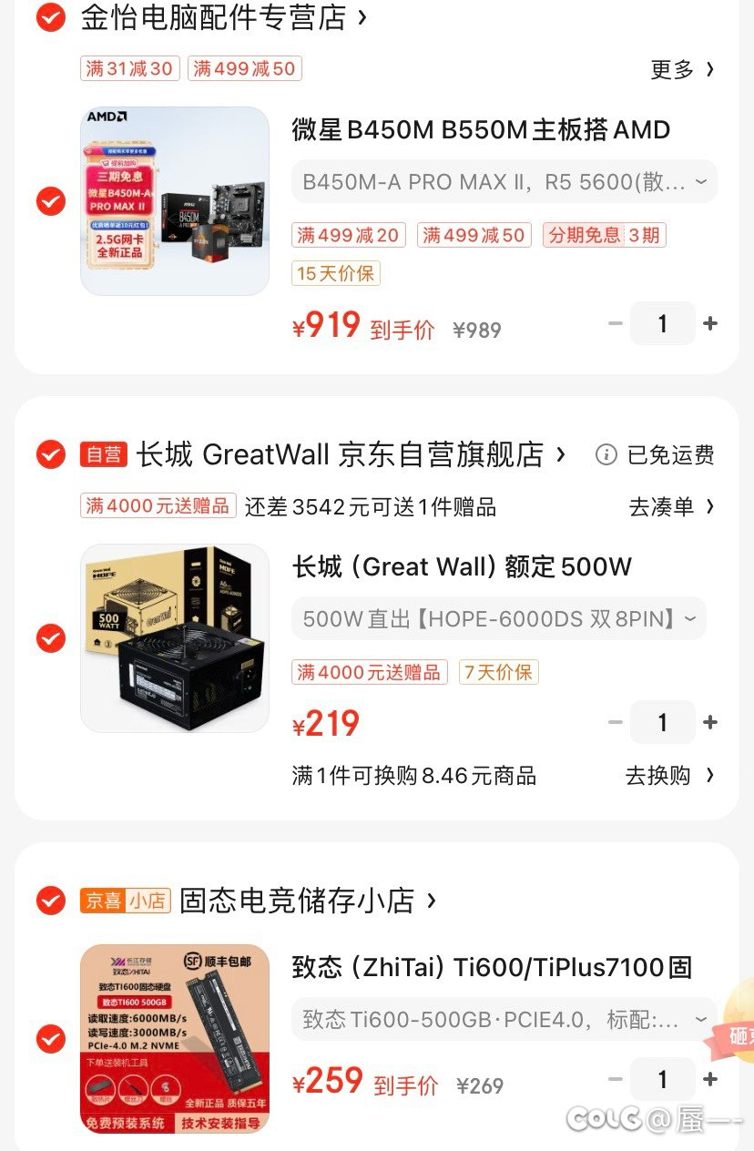 初晨丿 发表于 2024-08-12 19:00:01 那大佬帮忙出个5600+580的配置吧 京东价