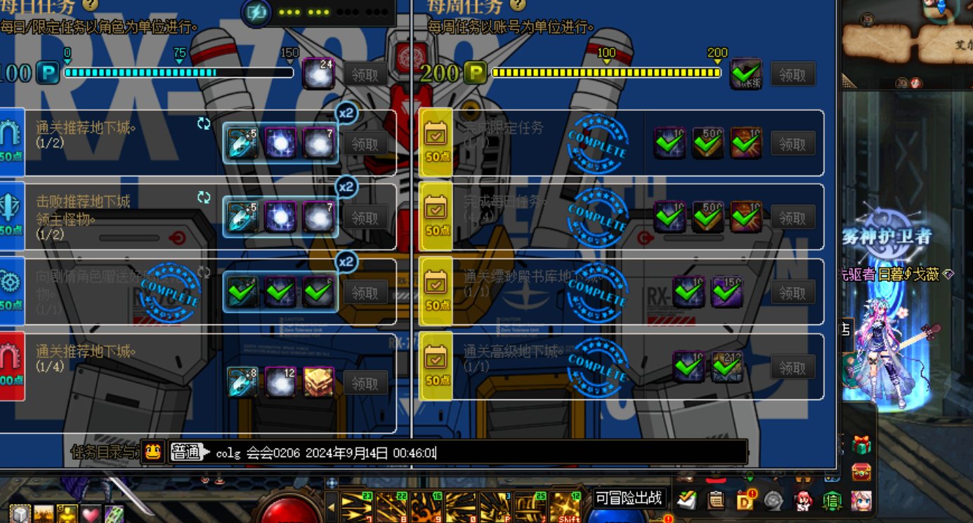 寒訫 发表于 2024-9-9 23:04 每周任务 每周可以完成下列2个每周任务,但需要单独就每周任务回帖以方便积分发放。 1.通关一次雾隐之地 ...