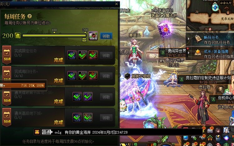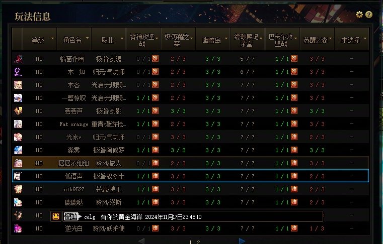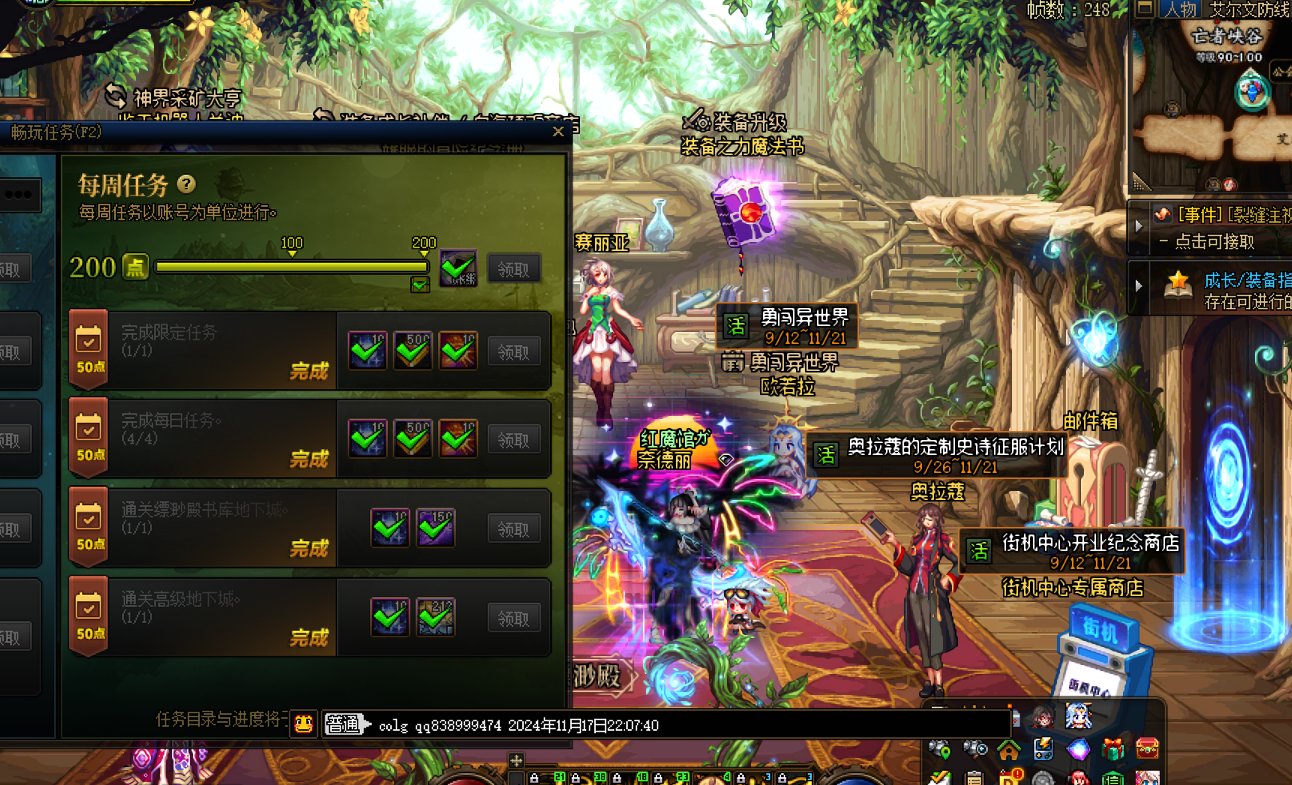寒訫 发表于 2024-11-11 01:52 每周任务 每周可以完成下列2个每周任务,但需要单独就每周任务回帖以方便积分发放。 1.通关一次苏醒之森 ...