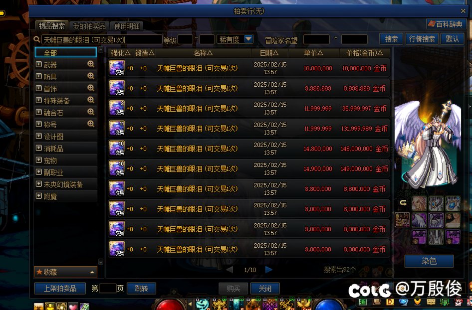 吃猫的鱼~ 发表于 2025-02-15 14:01:17 那你知道为啥会跌价这么快吗,秘宝装备的产出远远跟不上眼泪的产出,拍卖行香水都搜不到,没有秘宝,眼泪= ...