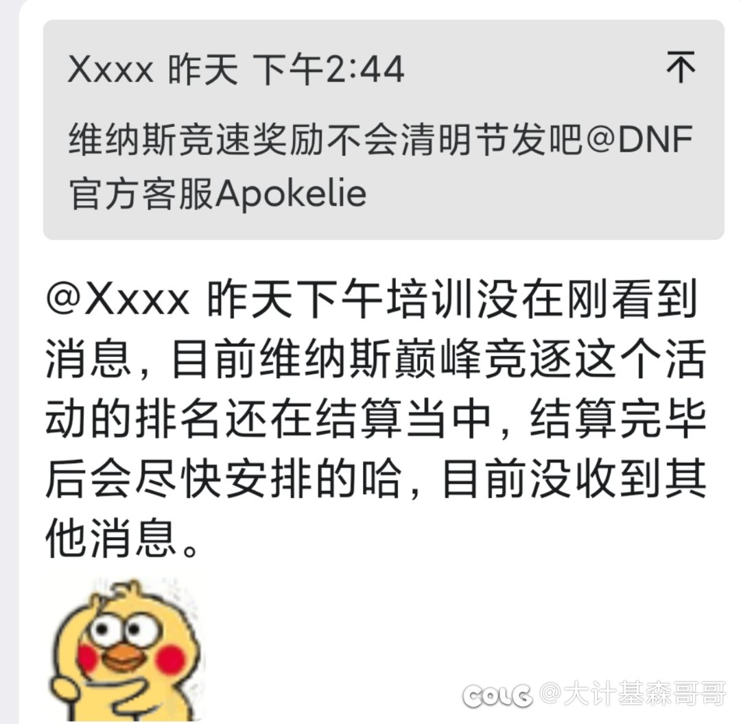 难道没人发现维纳斯竞速奖励还没发吗? ...