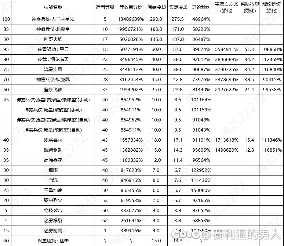 赛利亚的男人 发表于 2025-06-14 18:22:43 这是礁石的数据表,60vp2以后能直接打满伤害,我自己是把浓雾舍弃点满了60,小技能点的细雨和高原。 ...