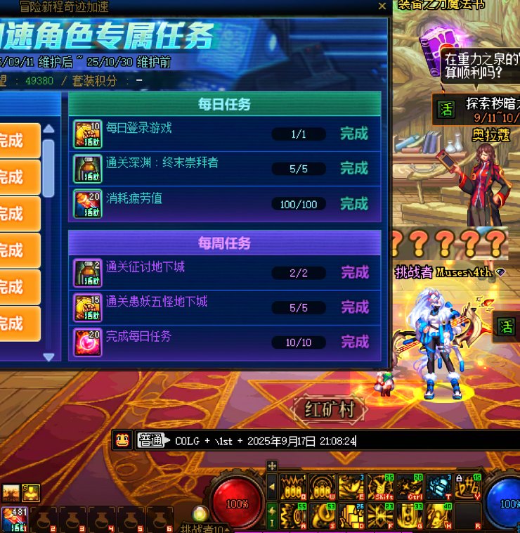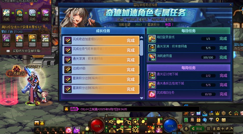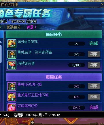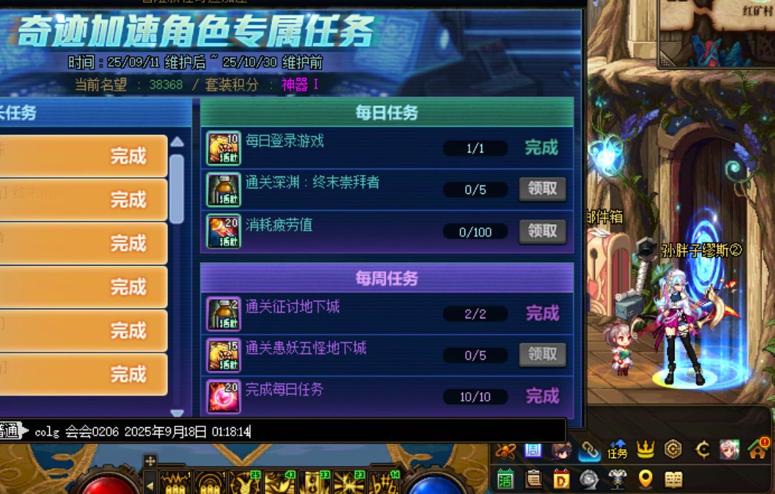 甜甜歆 发表于 2025-9-15 22:40 2.完成奇迹加速角色专属任务中任意1个每日任务,奖励20可用积分,活动期间总共可获得14次 2025年9月15日