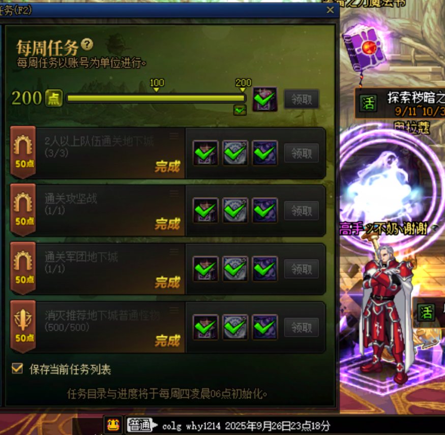 【每周任务】圣职村每周任务9.22-9.28