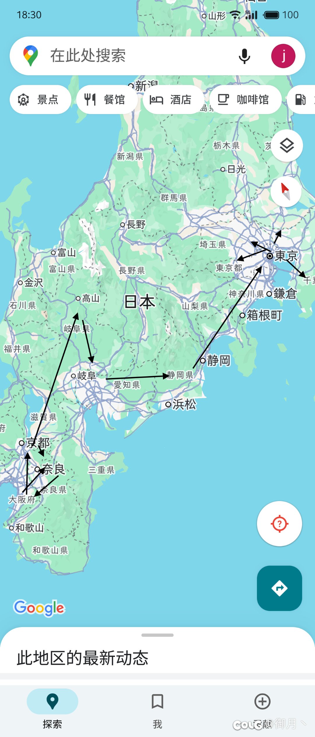 [杂谈] 看了四五天日本旅游攻略,大概拟了一个路线图[复制链接] |