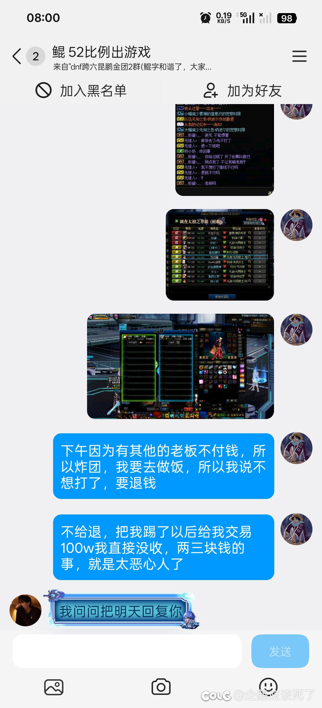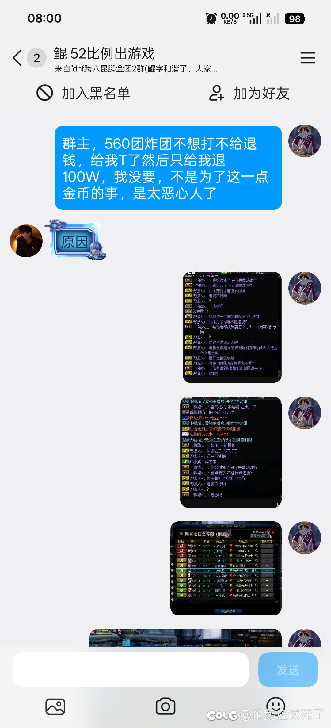 [这么过分,一定要发Colg] 跨六昆鹏金团打手炸团,要去做饭不想打了不给退钱,被请出攻坚队[复制链接] |