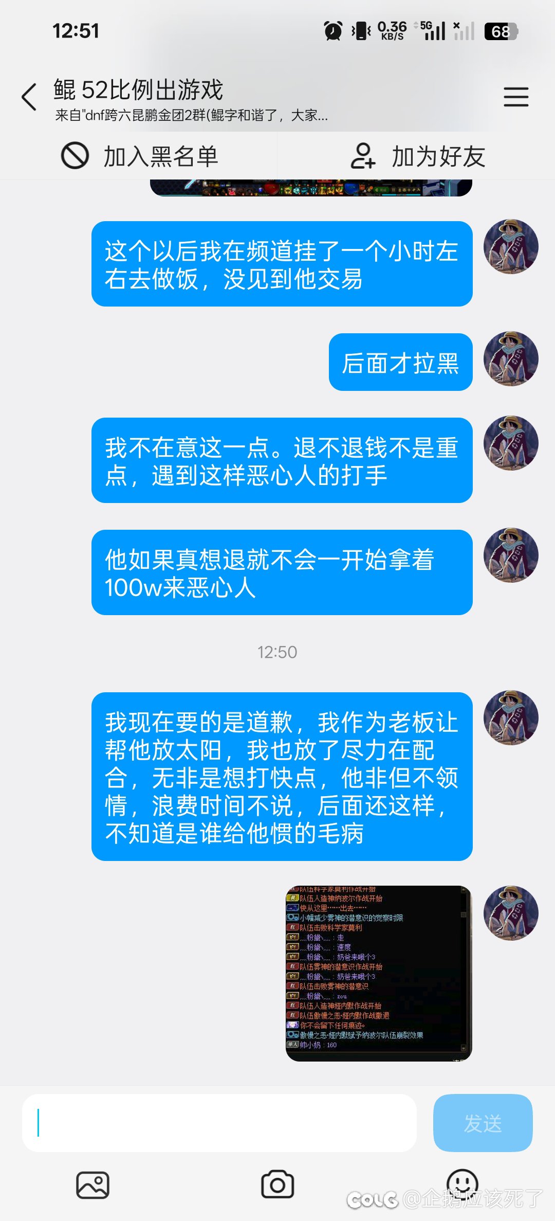 [这么过分,一定要发Colg] 跨六昆鹏金团打手炸团,要去做饭不想打了不给退钱,被请出攻坚队[复制链接] |
