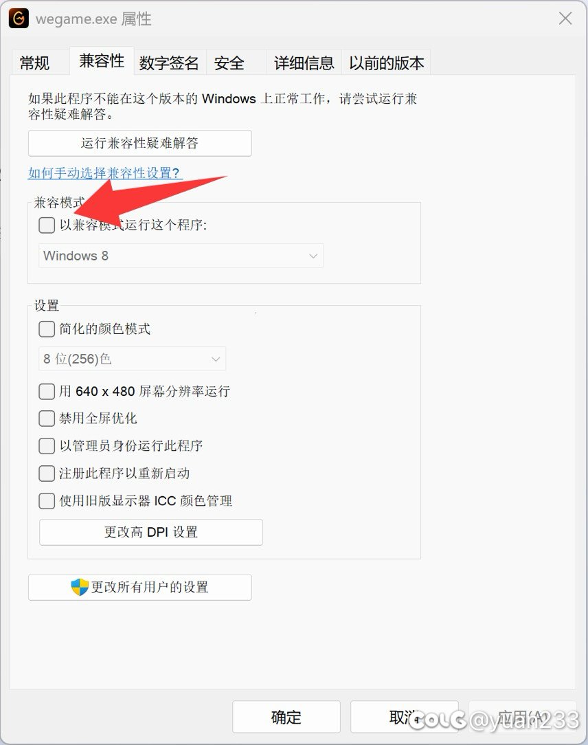 yuan233 发表于 2025-10-16 22:19:35 看看你的wegame是不是设置兼容性了,设置的话取消掉试试