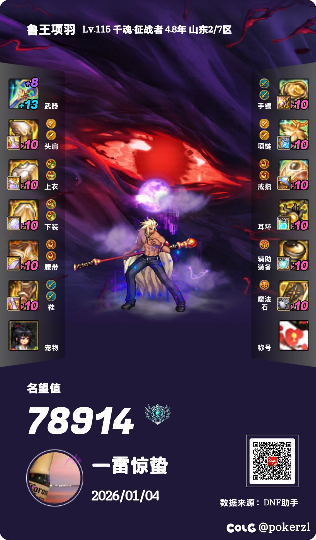 陈蔚 发表于 2026-01-04 17:04:05 全身史诗通宝,调试了5个部位,差一个太初一个史诗,透明龙袍,有稀有克隆武器没有克隆皮肤还是普通带孔皮 ...