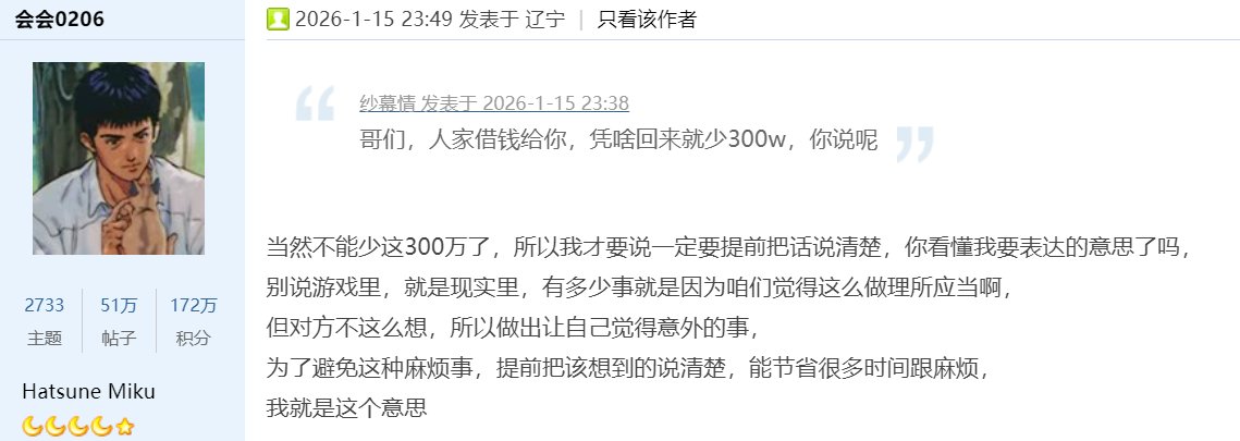 [这么过分,一定要发Colg] 借1E还1E,钻牛角尖还是装傻?[复制链接] |