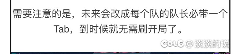 需要注意的是,未来会改成每个队的队长必带一个Tab,到时候就无需刷开局了。