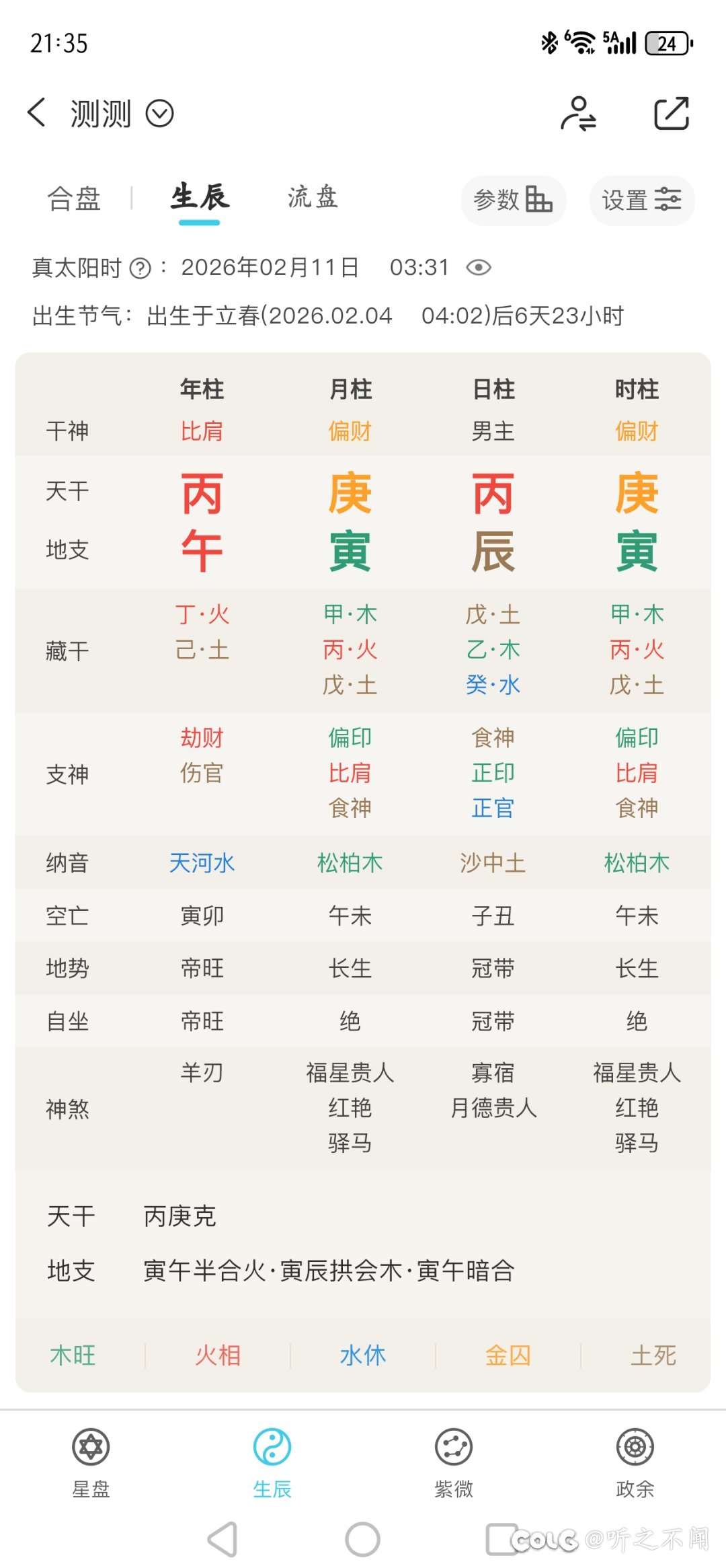 听之不闻 发表于 2026-2-11 21:37 万年历上没有变更,但略微常用的严谨八字排盘软件就会非常明确的把今天的年柱干支显示为丙午,严格来讲这 ...