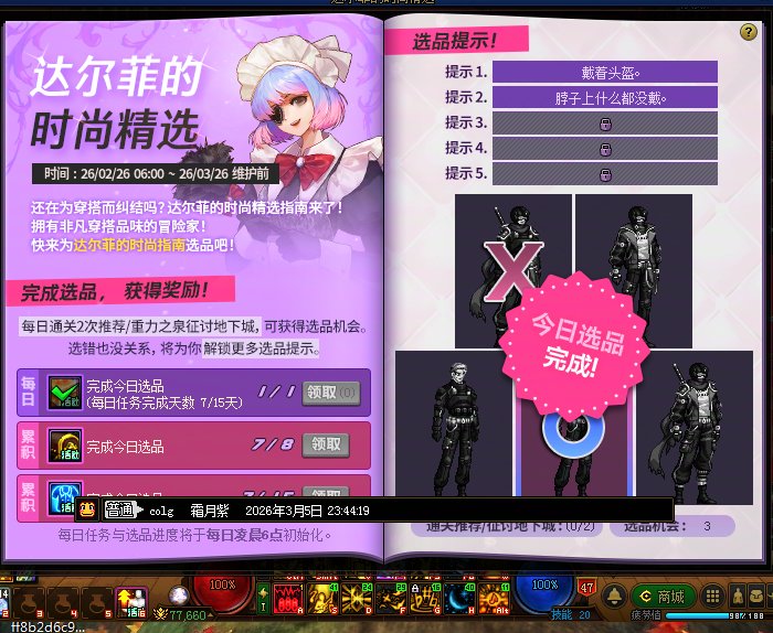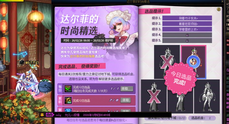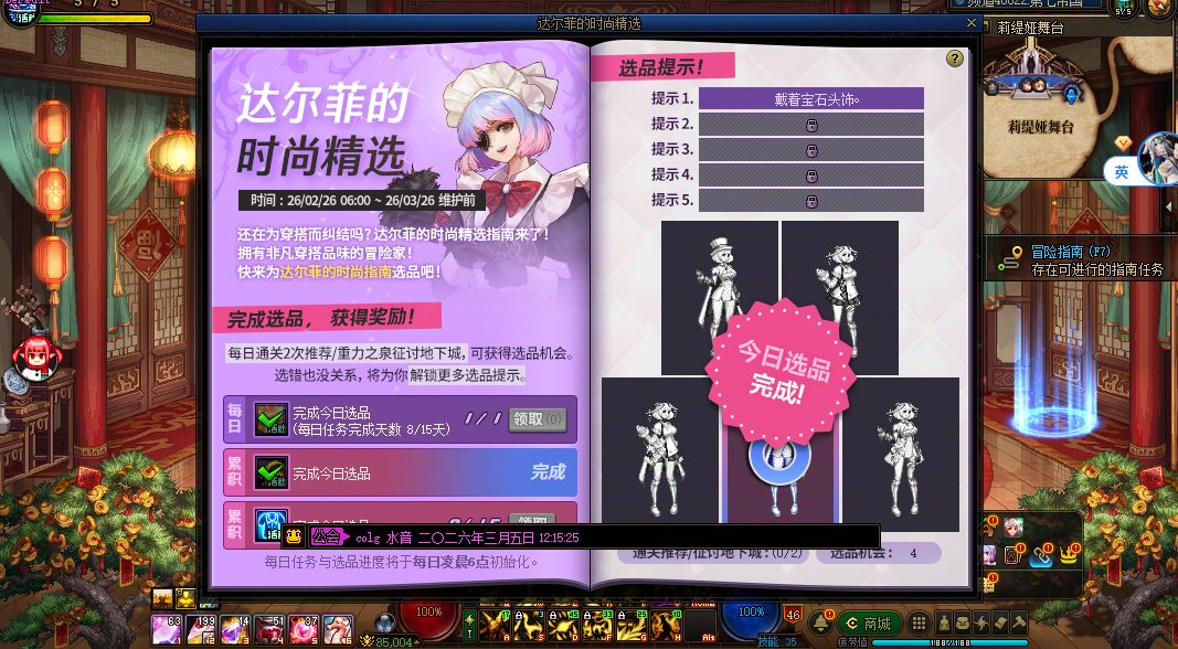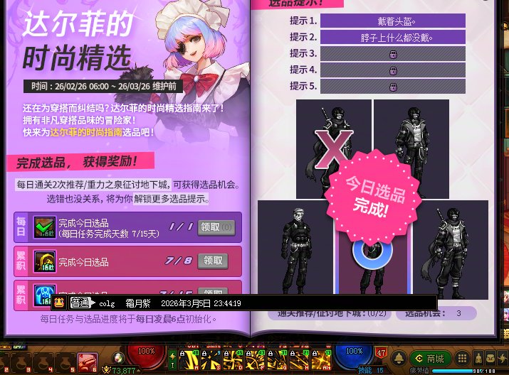 寒訫 发表于 2026-3-2 20:15 每周任务 每周可以完成下列2个每周任务,但需要单独就每周任务回帖以方便积分发放。 1.通关狄瑞吉攻坚战 ...