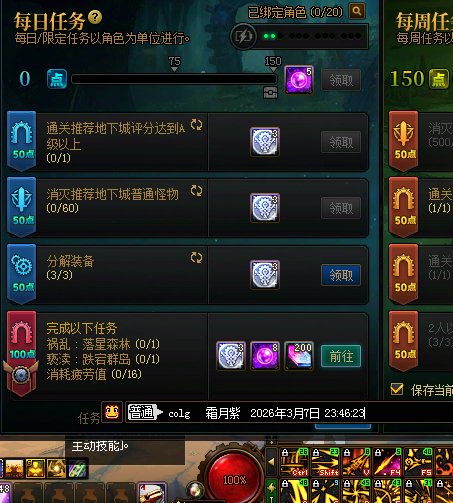 寒訫 发表于 2026-3-2 20:15 每周任务 每周可以完成下列2个每周任务,但需要单独就每周任务回帖以方便积分发放。 1.通关狄瑞吉攻坚战 ...